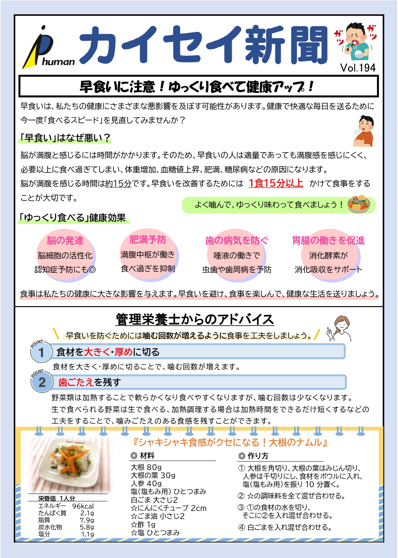 vol.194 早食いに注意!ゆっくり食べて健康アップ!