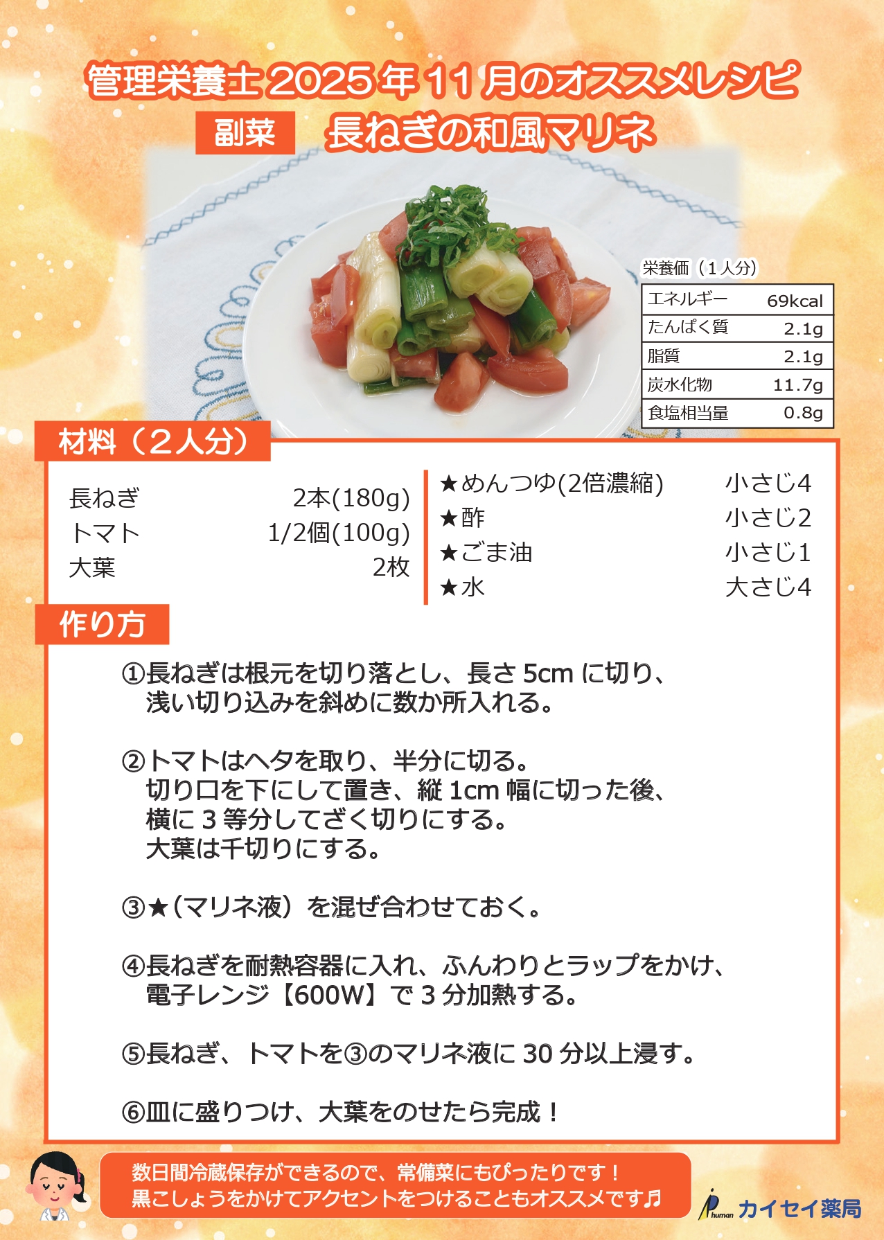 • 2025 年11月のオススメレシピ【長ねぎの和風マリネ】